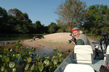 Sept. 2006 - Dr. Nicole Duplaix photographing the giant river otter in the Pantanal region of Brazil © Nicole Duplaix